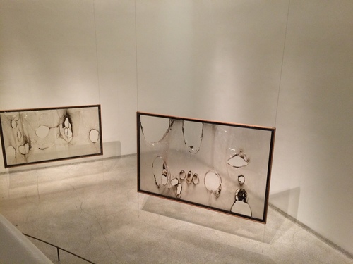 An architectural icon of 20th century modernism, the Guggenheim corkscrews from top to bottom, which is really one single plane only delineated into ‘floors’ by the ordering of an elevator. One begins to see Burri’s objects similarly escape the reasoning logic of space. Using this extension, Burri burned the boundaries between sculpture and painting. Can we learn through the unmaking of painting and find clues that help thinking to become more plastic? In other words, can we stay on the elevator?